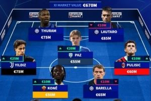 意甲最贵首发:伊尔迪兹普利西奇帕斯在列,国米四人入选